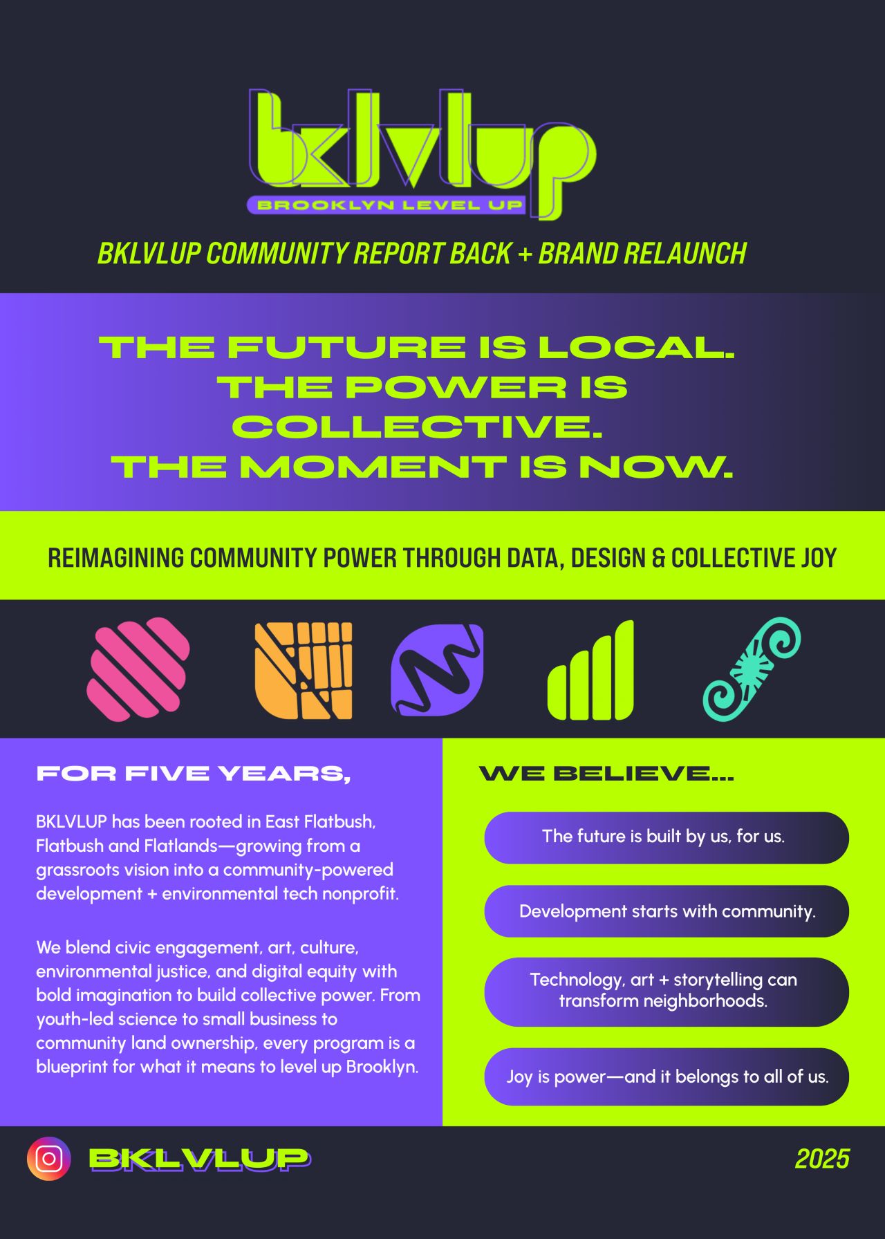 Brooklyn Level Up (BKLVLUP) is Brooklyn’s community-powered enviro-tech nonprofit and social impact lab — where neighbors, data, and design build the blueprint for collective resilience.