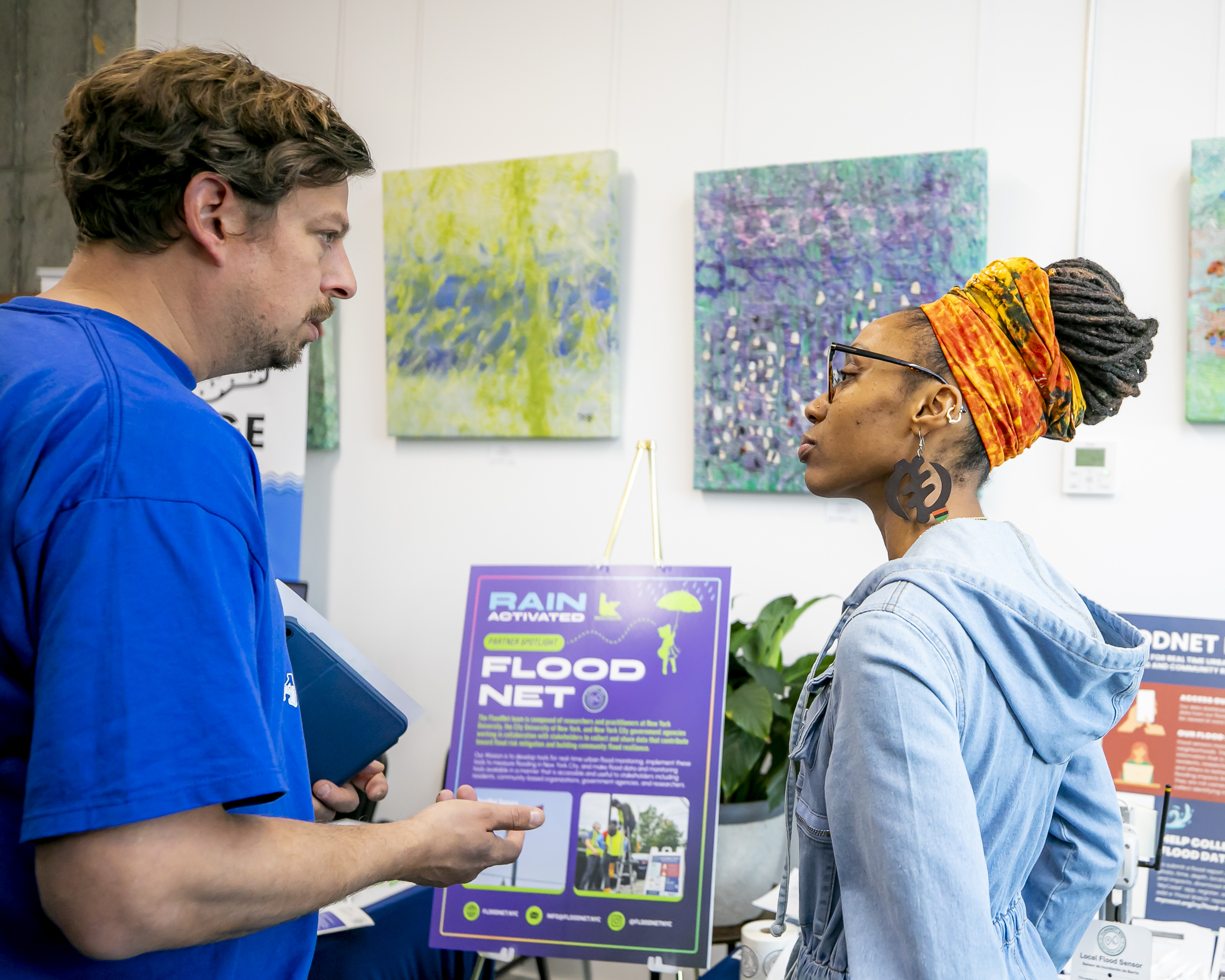 In fall of 2025, BKLVLUP launched Rain Activated, a enviro-tech and art initiative curated to raise awareness around flooding and flooding resources in Brooklyn. Rain Activated transforms sidewalks into storytelling canvases — revealing hidden messages that connect neighbors to tools, care, and resilience. In November 2025 BKLVLUP hosted its launch event, an interactive experience with various stations that showcased partner organizations, tools, and resources to grow flooding resilience and respond to flooding.