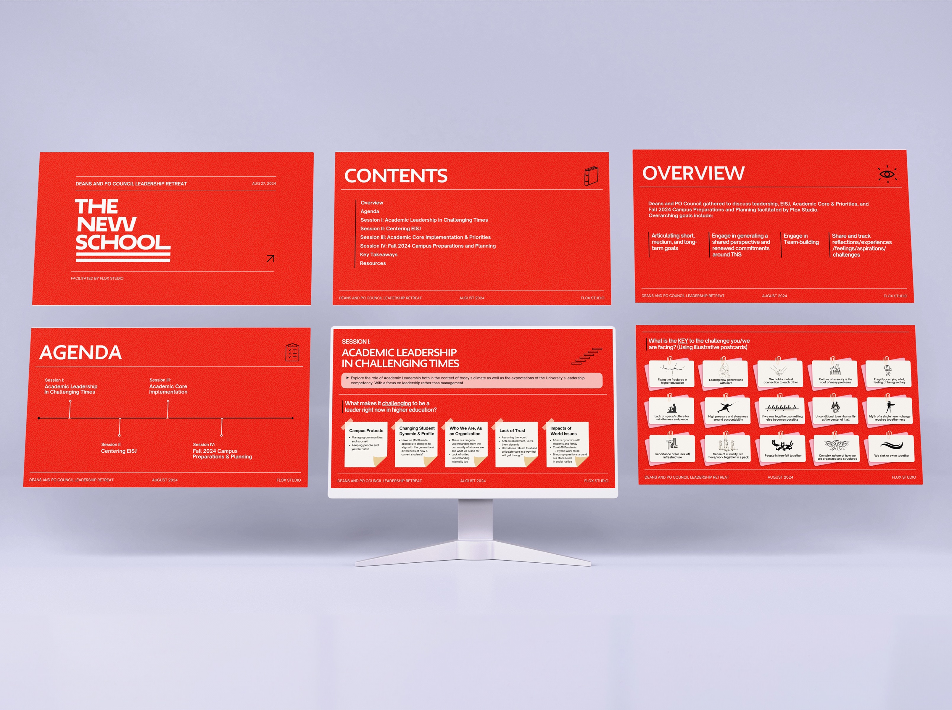 Through an engagement with leadership teams at both The New School and Parsons, FLOX Studio has facilitated multiple gatherings and workshops in 2024-2025 as a continuation of the Strategic Planning work previously partnered on before. Through these gatherings and retreats, FLOX Studio facilitates impactful and pivotal conversations to navigate collaboration, transformation, and futuring at The New School and Parsons.